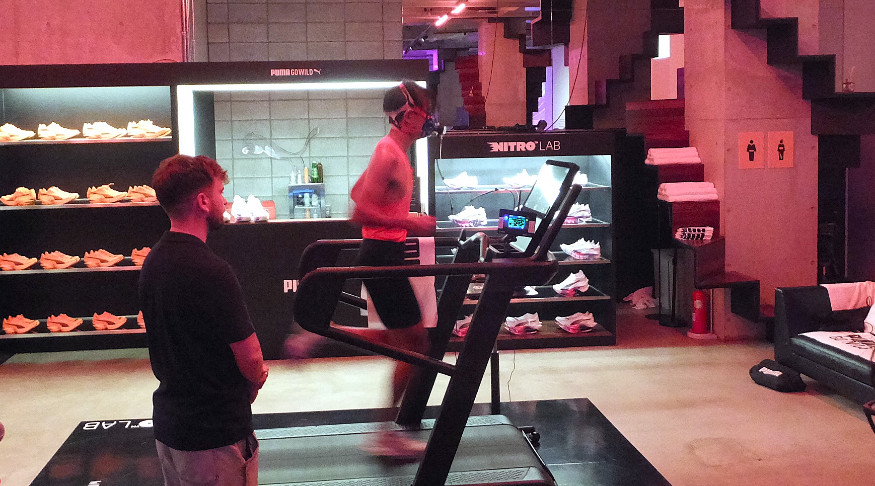 また、プーマが世界トップレベルのアスリートとともに製品開発を行う過程で実際に使用した「走行効率テスト装置」(ランニングエコノミー・ラボ)も一般公開。走行効率テストとは、走行中に発揮されるエネルギー効率を測るための検証方法で、一定の速度で走りながら呼吸を計測し、トップアスリートと同じように“少ない力でどれだけ速く走れるか”を科学的に可視化する。