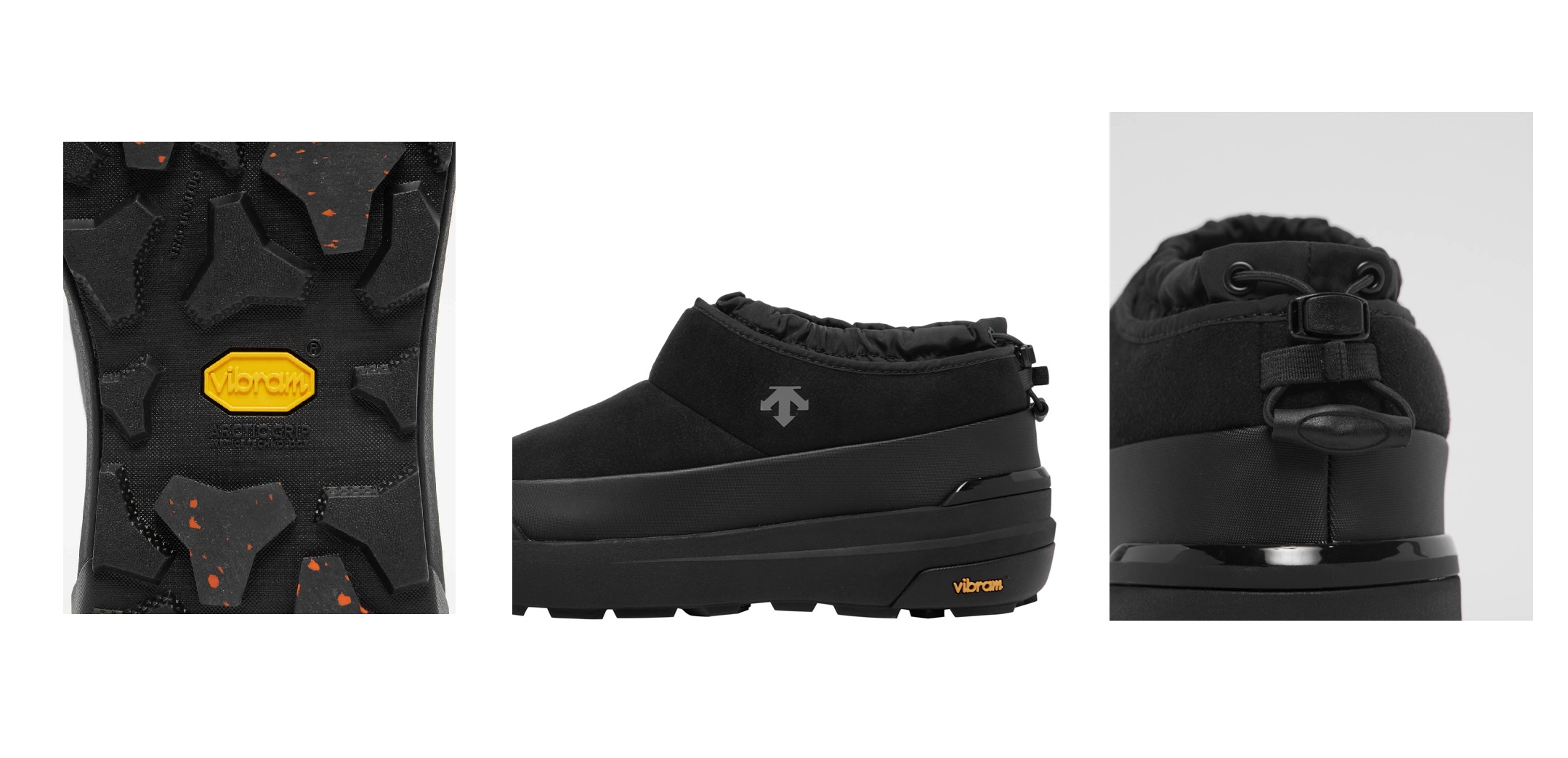 D.Trace コレクションの基本スペックは、①Vibram Arctic Grip ALL TERRAINソール、②透湿防水設計(5㎝静水試験で2時間防水を検査機関で検証済。※完全防水ではない。一部商品除く)、③内側の肌に触れる部分に太陽光の赤外線を含むほぼすべての光の波長を熱に変換するデサント独自の蓄熱保温素材HEAT NAVI(ヒートナビ)を採用、④インソール表面に蓄熱素材のベルセラを使用し防寒性を向上――の4つ。