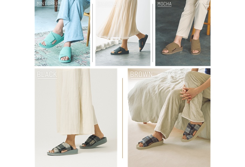 はだしでもソックスでも合わせやすいダブルストラップのシンプルデザインで、スポーツ後の着用だけでなく、立ち仕事で足に疲れが溜まりやすいオフィスワーカーや、夕方以降に足のむくみを感じやすい運動不足のリモートワーカーの室内履きとしても使え、幅広いシーンで着用できる。価格は1万2100円(税込)、カラーはブラックのみで、サイズは8サイズ(22.0~29.0cm)用意。