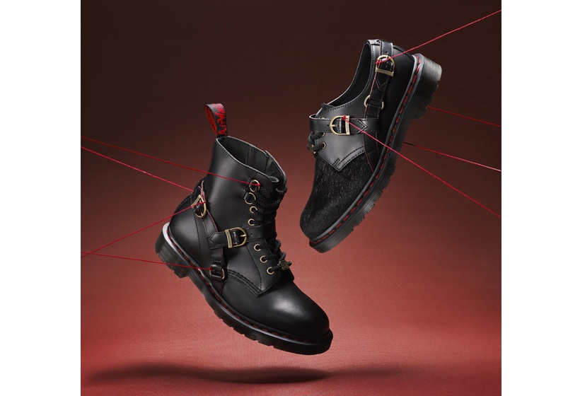 「THE GREAT FROG」は、1972年にロンドンのカーナビーストリートにショップをオープンして以来、ハンドメイドによるゴシックなデザインで、ロックスターやサブカルチャーの反逆者、アウトローな人々に50年以上にわたり愛用されてきた。今回の記念すべき初コラボレーションでは、1460 8ホールブーツとJADONプラットフォームブーツをベースに、THE GREAT FROGのダークメタルな美学とドクターマーチンの反逆精神を融合したブーツ2型を発表した。いずれのスタイルにも音楽と反逆精神という両ブランドのもつステートメントが深く刻まれている。