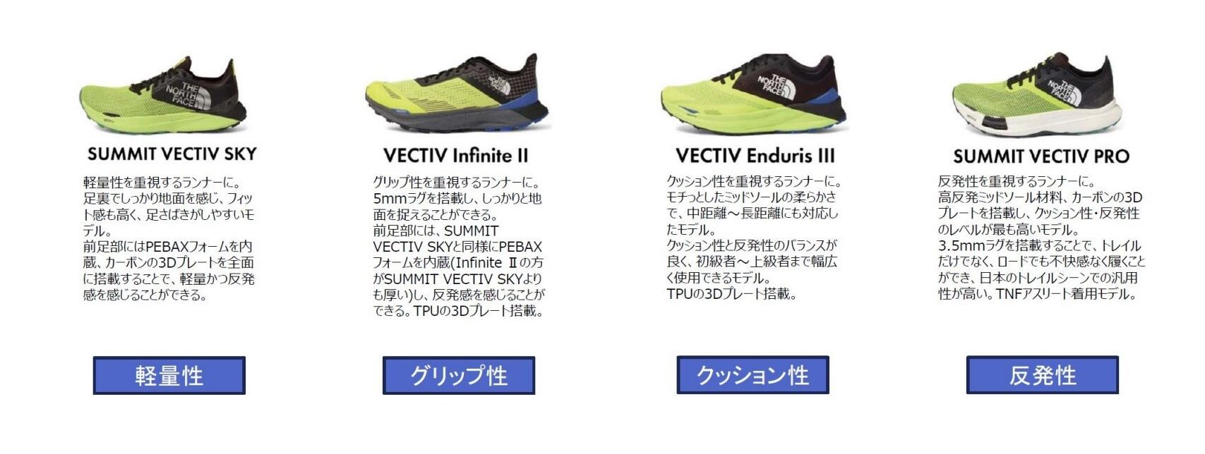 3Dプレート搭載のトレイルランニングシューズ「VECTIV(ベクティブ)」コレクションが進化――「反発性」「軽量性」「グリップ性」「クッション性」から重視するポイントで選べるラインアップに