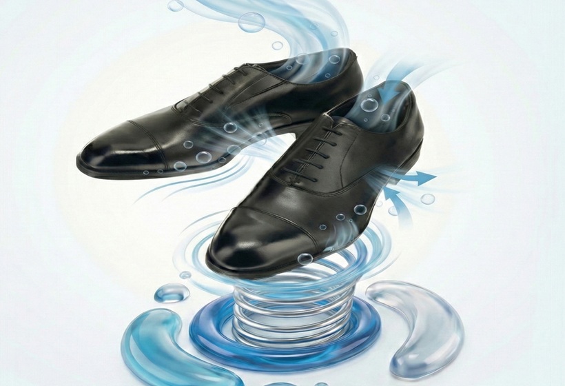 これまでセットアップやインナーなどで撥水性に優れたアイテムを展開し、雨の日のビジネスパーソンの悩み解決をサポートしてきた。今回「靴が濡れてシミになってしまう」「レインシューズは長靴感があってコーディネートに合わない」といった足元の悩みを解決すべく、本革の見た目ながら、撥水性・防汚性・撥油性に優れたテフロン加工を施したスウェード調パンプスを新たに企画した。