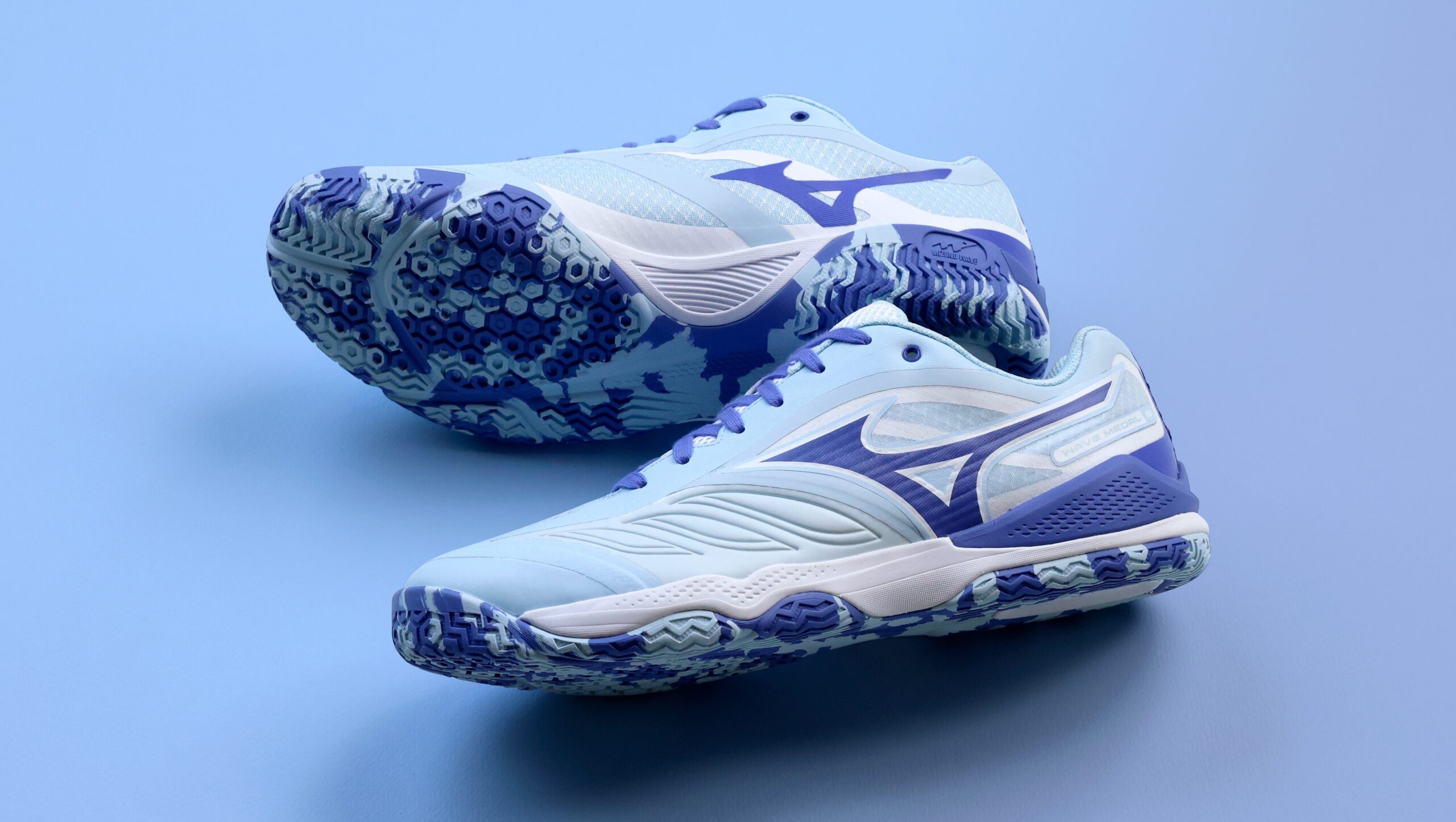 WAVE MEDALシリーズは、安定性とクッション性を兼ね備えたモデルとして幅広い世代の選手から支持を得ており、今回のモデルは8代目。ミズノ独自開発の高反発素材、MIZUNO ENERZY NXTを採用することで、長時間のプレーでもよりダイナミックなフットワークをサポート。また、アウトソール部の意匠を最適な方向に配置することで、より安定性も追求している。