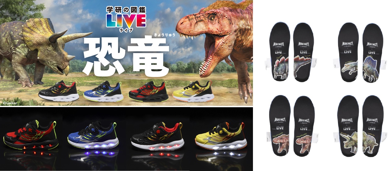 「ホーキンス」の“マッハGT”シリーズから子どもに人気の「学研の図鑑 LIVE 恐竜」とコラボしたキッズシューズ第3弾――ノベルティキャンペーンや一部店舗に特設コーナーも開設