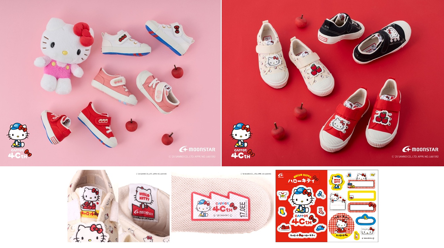 ムーンスターは、「MOONSTAR Carrot(ムーンスター キャロット)」のブランド誕生40周年モデル第2弾として、サンリオの人気キャラクター「ハローキティ」とコラボレーションした国産子ども靴を8月下旬から順次発売する。