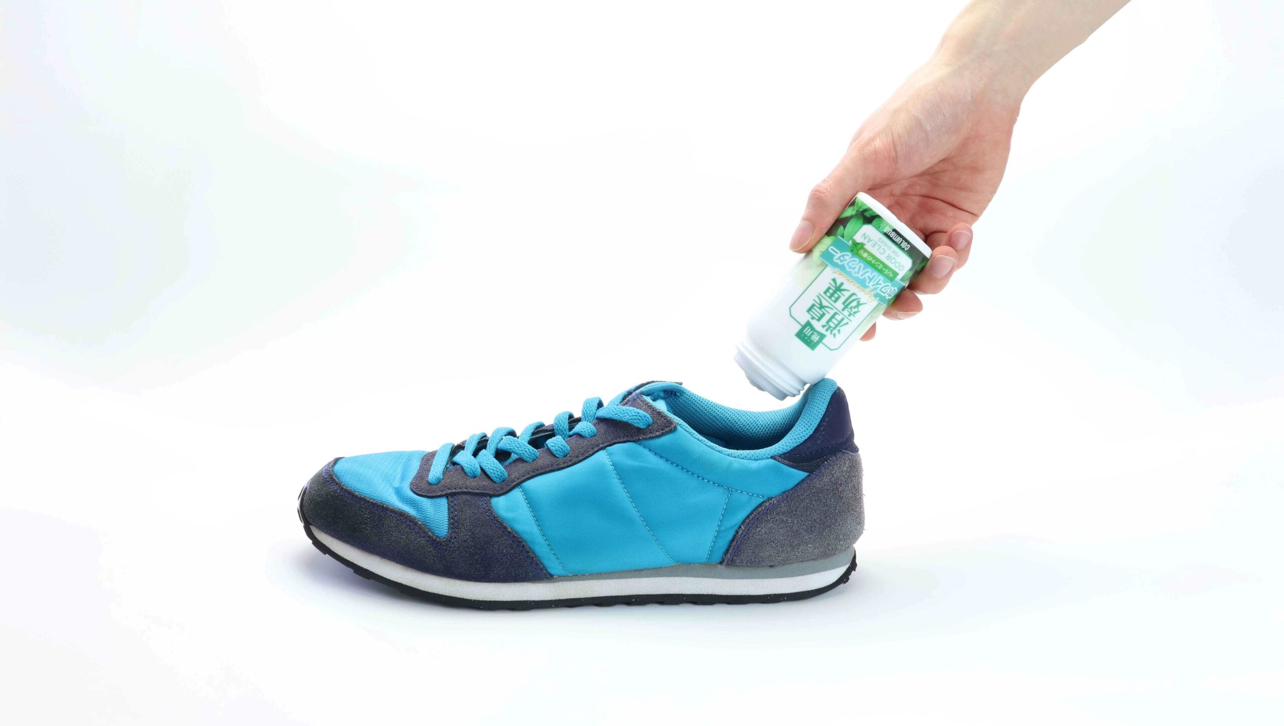 使用方法は、出かける前や帰宅したときに靴の中に2、3回(約1g)サッと振り、靴を振るなどして全体に行き渡らせるだけ。またカジュアルシューズからスポーツシューズ、子ども靴など、どんなシューズにも使える。
