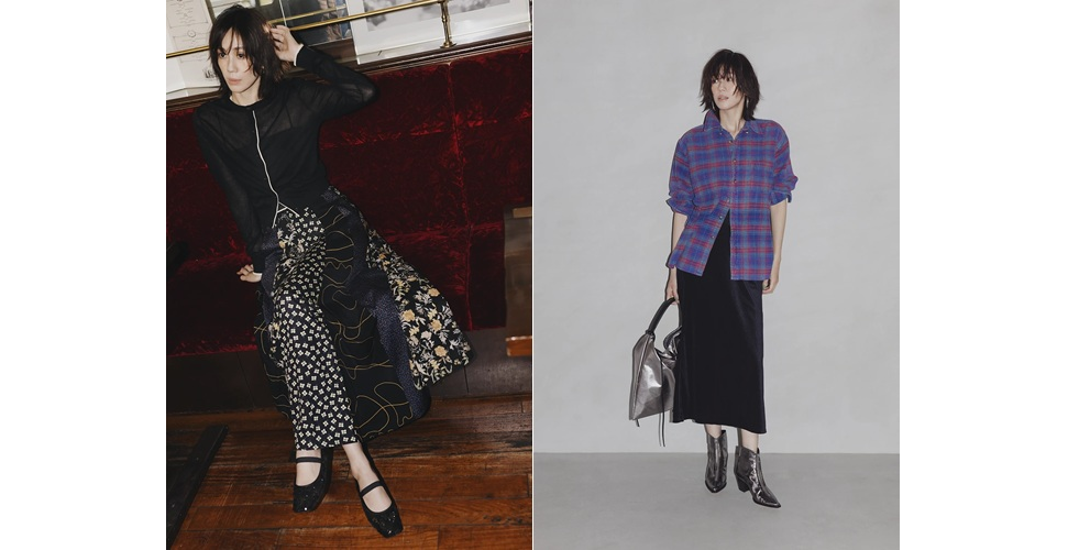 スパンコールが華やかな足元を演出するメリージェーンパンプス「AP-255081」(税込価格3万3000円)やスクエアチェーンをTストラップにあしらったバックベルトパンプス「AP-255091」(税込価格3万3000円)、センタージップで辛口モードな雰囲気に仕上げたショートブーツ「AP-258026」(税込価格4万4000円)など、足元にひとさじのスパイスとなる豊富なラインアップを用意している。
