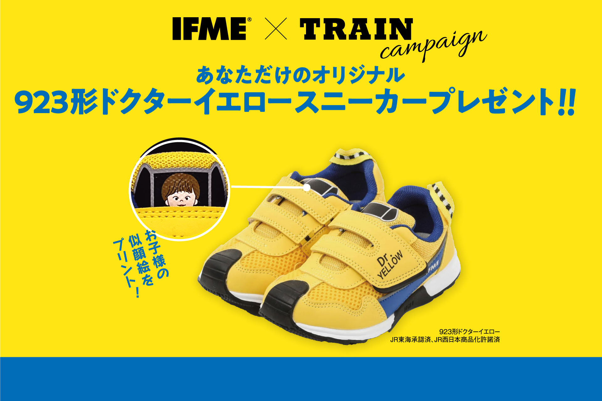 キャンペーン内容は、IFME×TRAINシリーズ商品を購入した人の中から抽選で5人に、同シリーズの中でも人気の高い「923形ドクターイエロースニーカー」に似顔絵イラストを組み込んだ世界に一つだけのオリジナルスニーカーが当たるというもの。