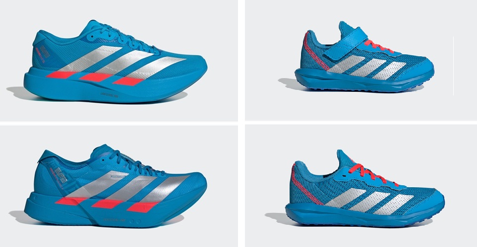左ADIZERO EKIDEN COLLECTIONの主要モデル:㊤ADIZERO EVO SL WOVEN、㊦ADIZERO ADIOS PRO 4、右ADIDAS FAITOの限定モデル:㊤ADIDAS FAITO ELK、㊦ADIDAS FAITO J