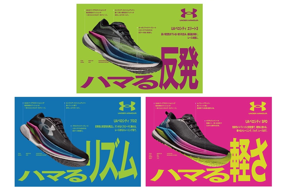 「アンダーアーマー」から新作「UA ベロシティ」シリーズ3モデルを同時発売――前作と比べ柔らかさと反発性が向上、目的やレベルに応じて最適な1足を選べる