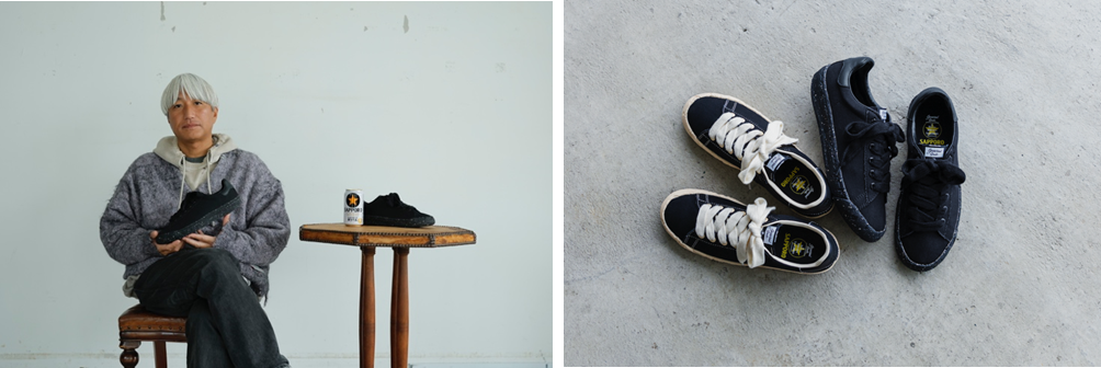 今回のコラボレーションスニーカーは、「メゾン ミハラヤスヒロ」のデザイナーである三原康裕氏が手掛ける「General Scale.」と「サッポロ生ビール黒ラベル」がコラボしたオリジナルデザインで、「大人の☆生。」をコミュニケーションテーマに掲げており、ブラックを基調にしたシックなデザインに、大人の遊び心を潜ませたスニーカーに仕上げている。