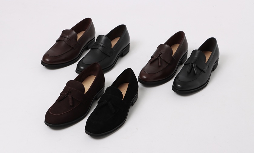 デザインはローファー、タッセルローファー、スエードタッセルローファーの3タイプ。カラーはブラック、ダークブラウン。サイズは24.5~27.0㎝(全6サイズ展開)。価格は1万9690円(税込)。