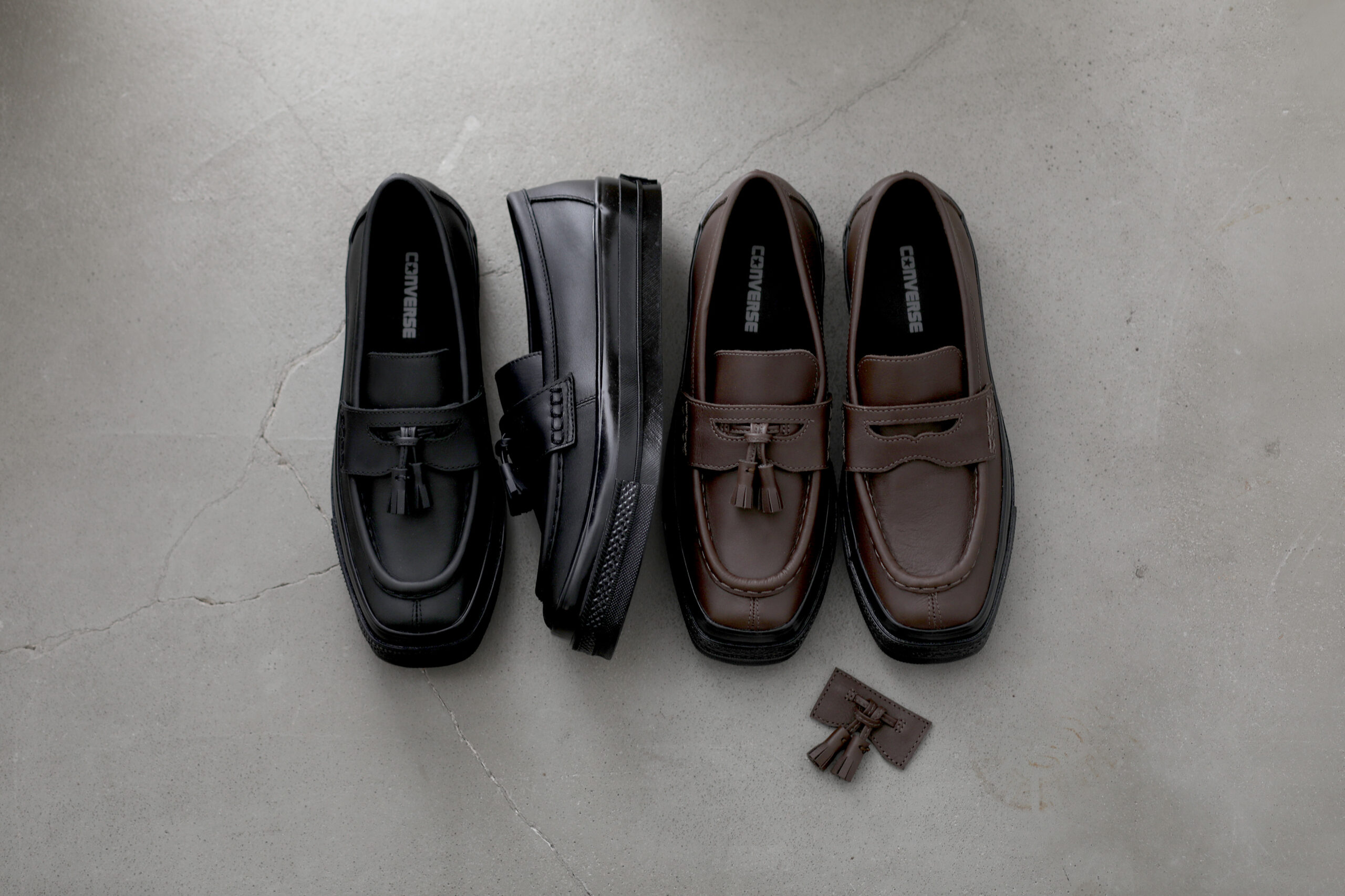 「ALL STAR SQUARETOE LOAFER」は、コンバースの象徴であるオールスターに、スクエアトウのレザーシューズをモチーフとしたデザインを組み合わせたモデルで、タッセルは取り外し可能な仕様で、タッセルローファーの意匠を取り入れている。