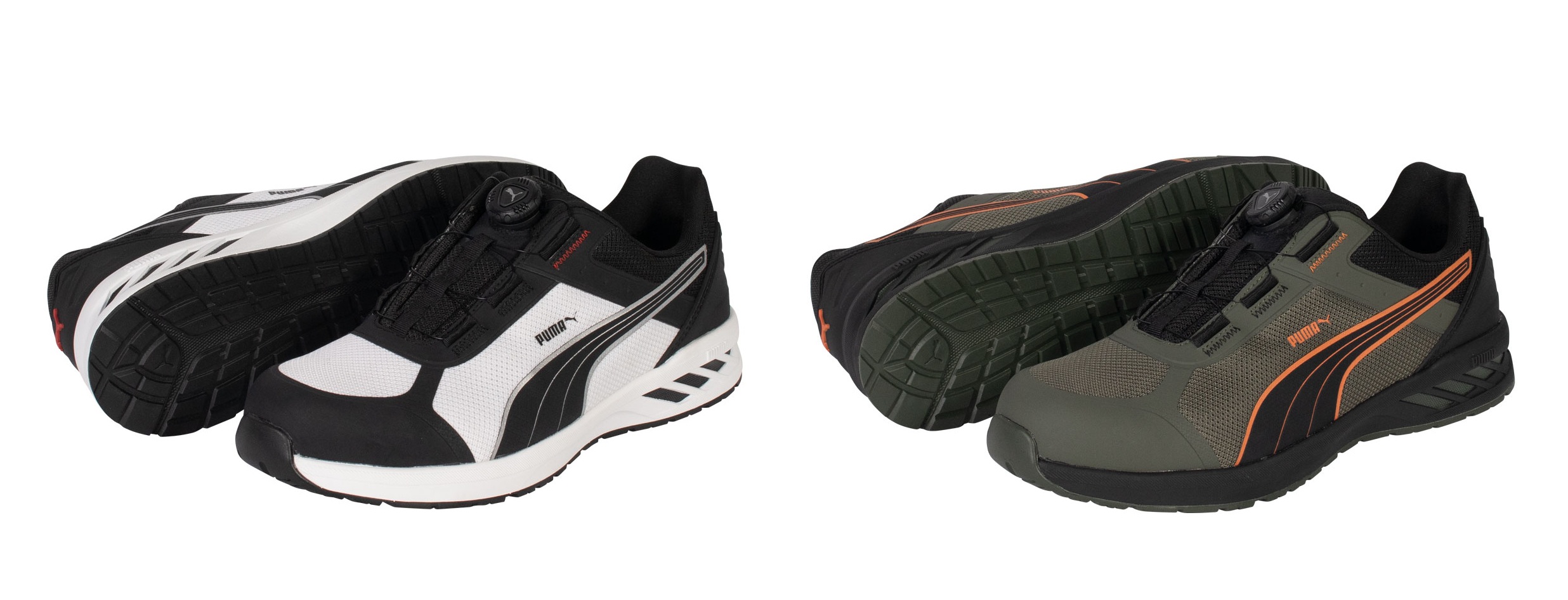 PUMA SAFETYは、作業現場での怪我のリスクから足を守る安全性に、スポーツブランドならではのテクノロジーを融合。スタイリッシュで、普段履きにもなじむスポーティなデザインが特徴だ。