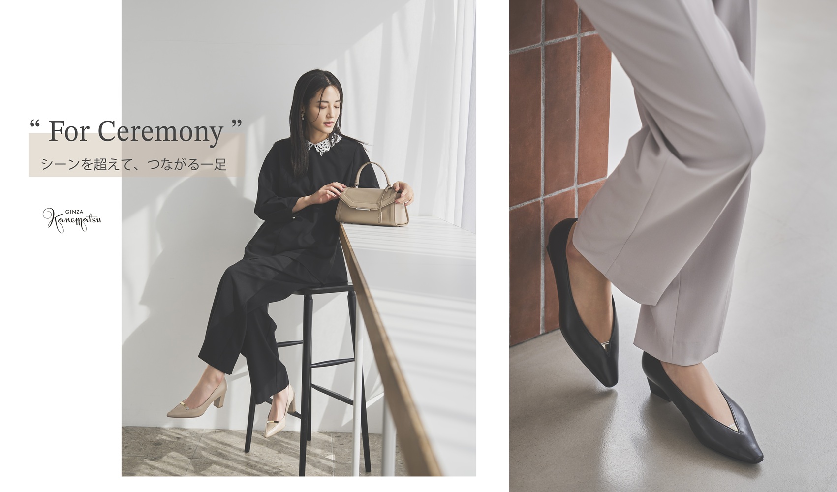 かねまつが展開する「銀座かねまつ」は、ハレの日にふさわしい品のよさと、日常にも取り入れやすいデザインのローヒールパンプスやローファーなど、その後の通勤やお出かけにも、シーンを問わず活躍するアイテムをラインアップ。公式通販サイト(https://www.shoesconcierge.jp/contents/info/20260210_forceremony.html)で特集ページを公開している。