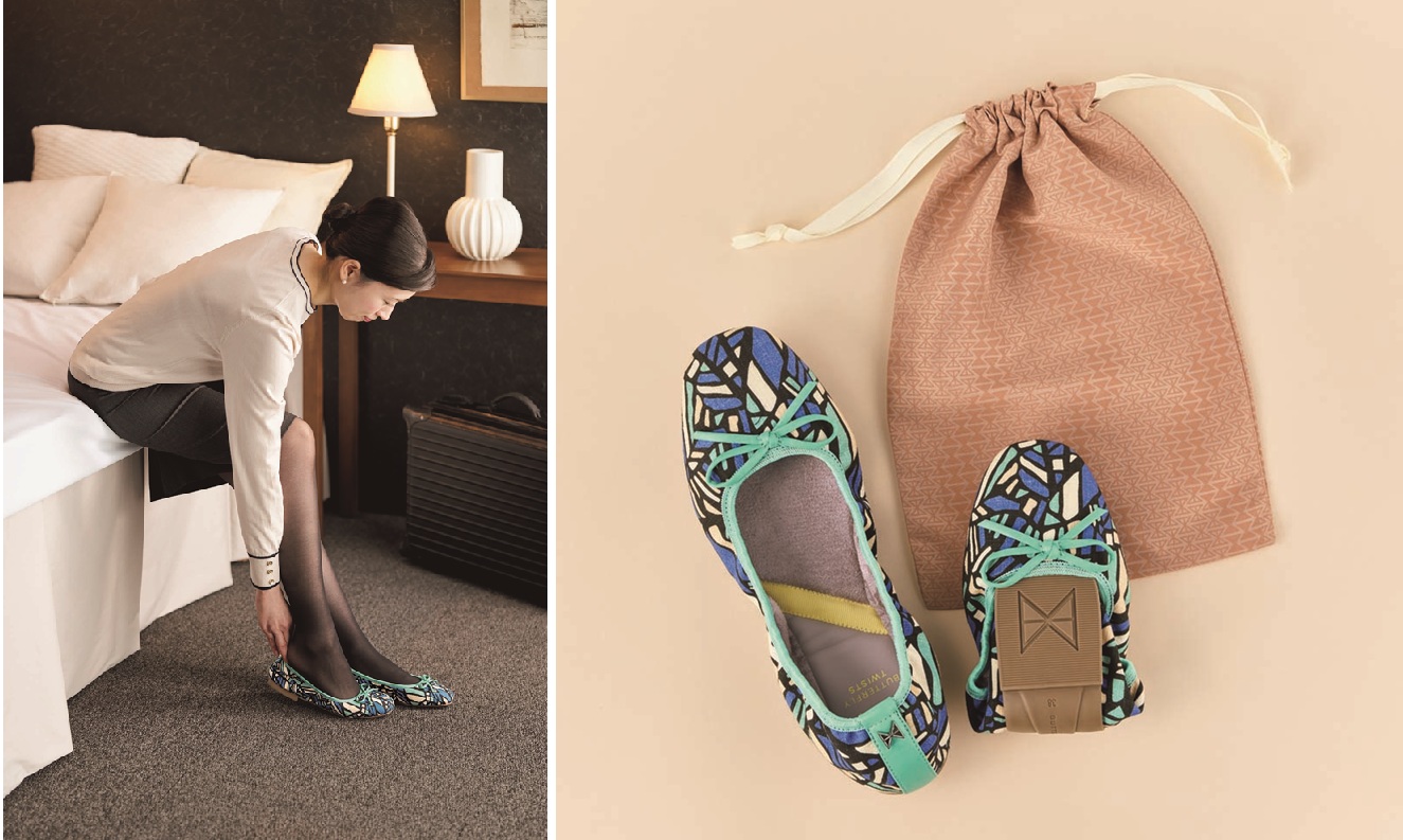 折りたたんでコンパクトになるため、バッグに入れてちょっとした履き替え用の持ち歩きにも便利。オフィスでの履き替え、授業参観、旅行や機内、外履きから室内履きまで、シーンを選ばず活躍する一足になっている。